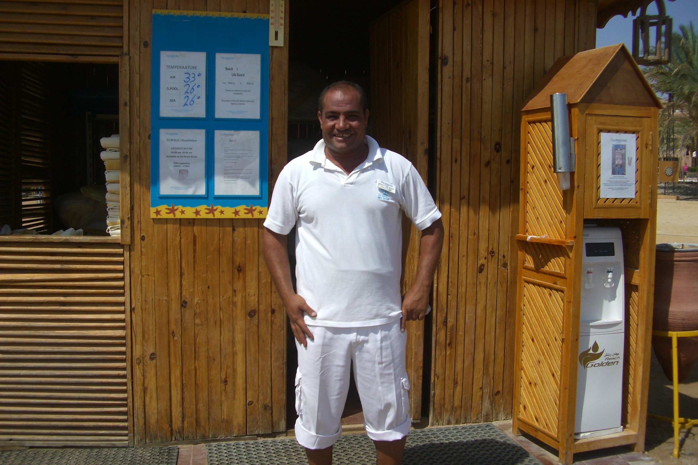 Sehr fleißiger Strandboy. Er rennt schon vor 8 Uhr mit dem Stranbesen um die Liegen. Fitness pur. Zu jeder Zeit immer ein freundliches Wort auf den Lippen.