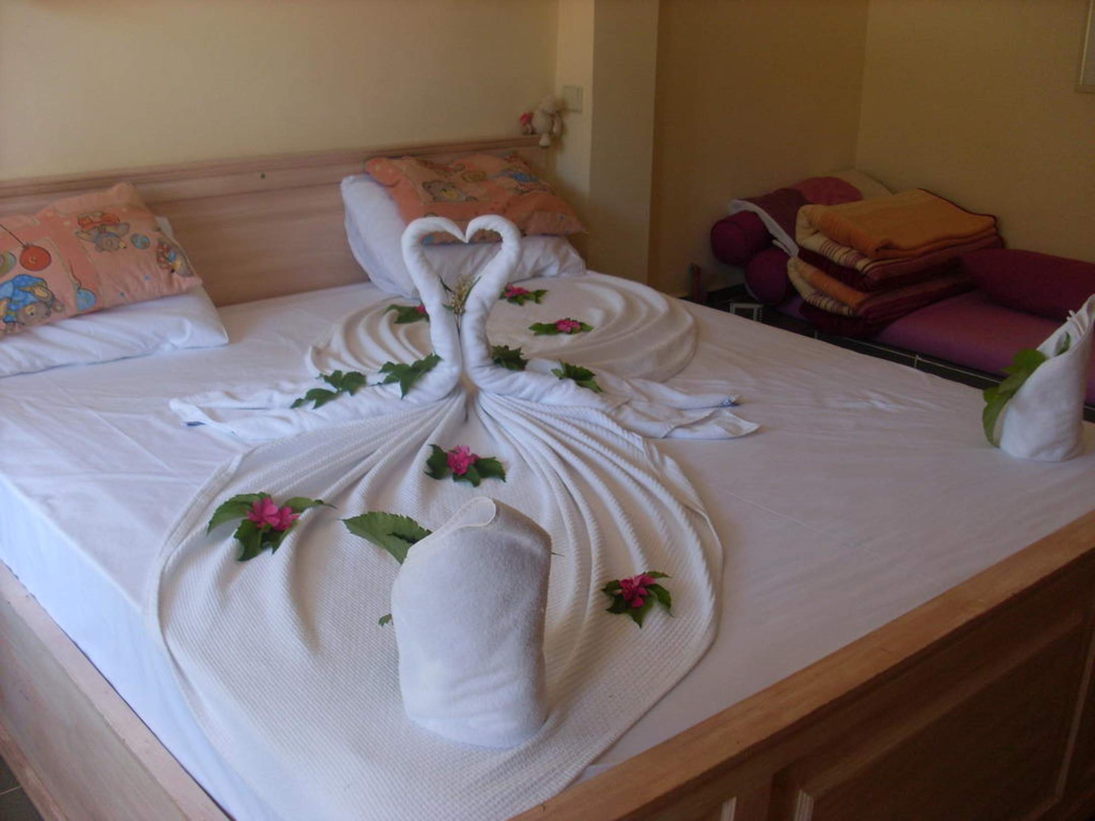 Die Putzfrau hat uns an diesem Tag sehr schön das Bett dekoriert.