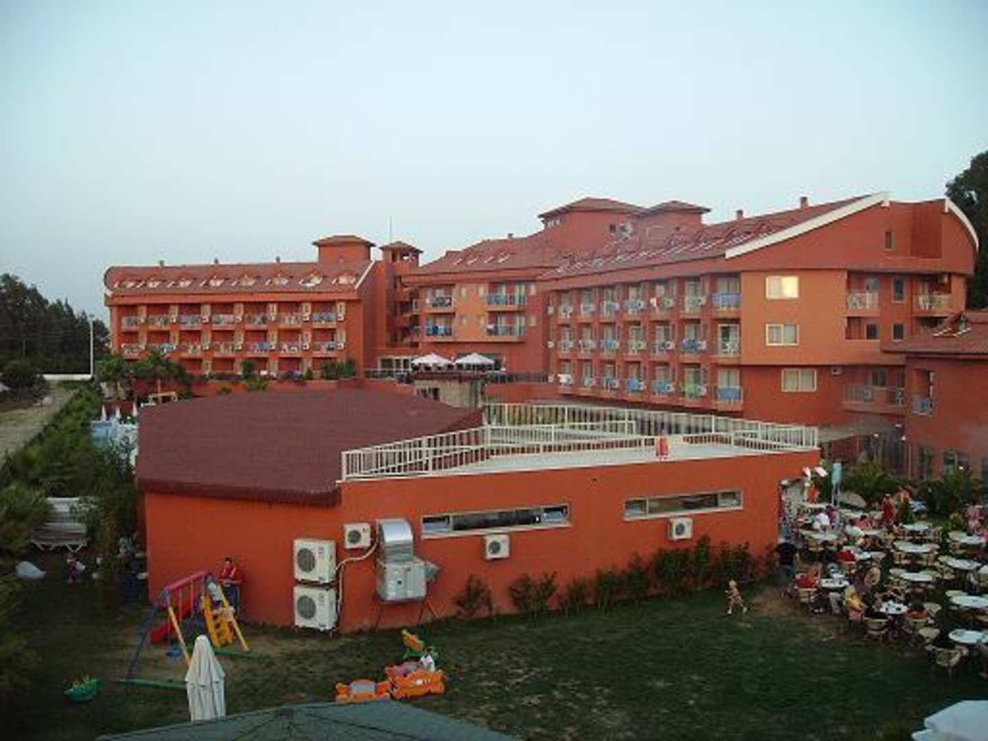 Das Hotel aus der Sicht von der Rutschanlage.