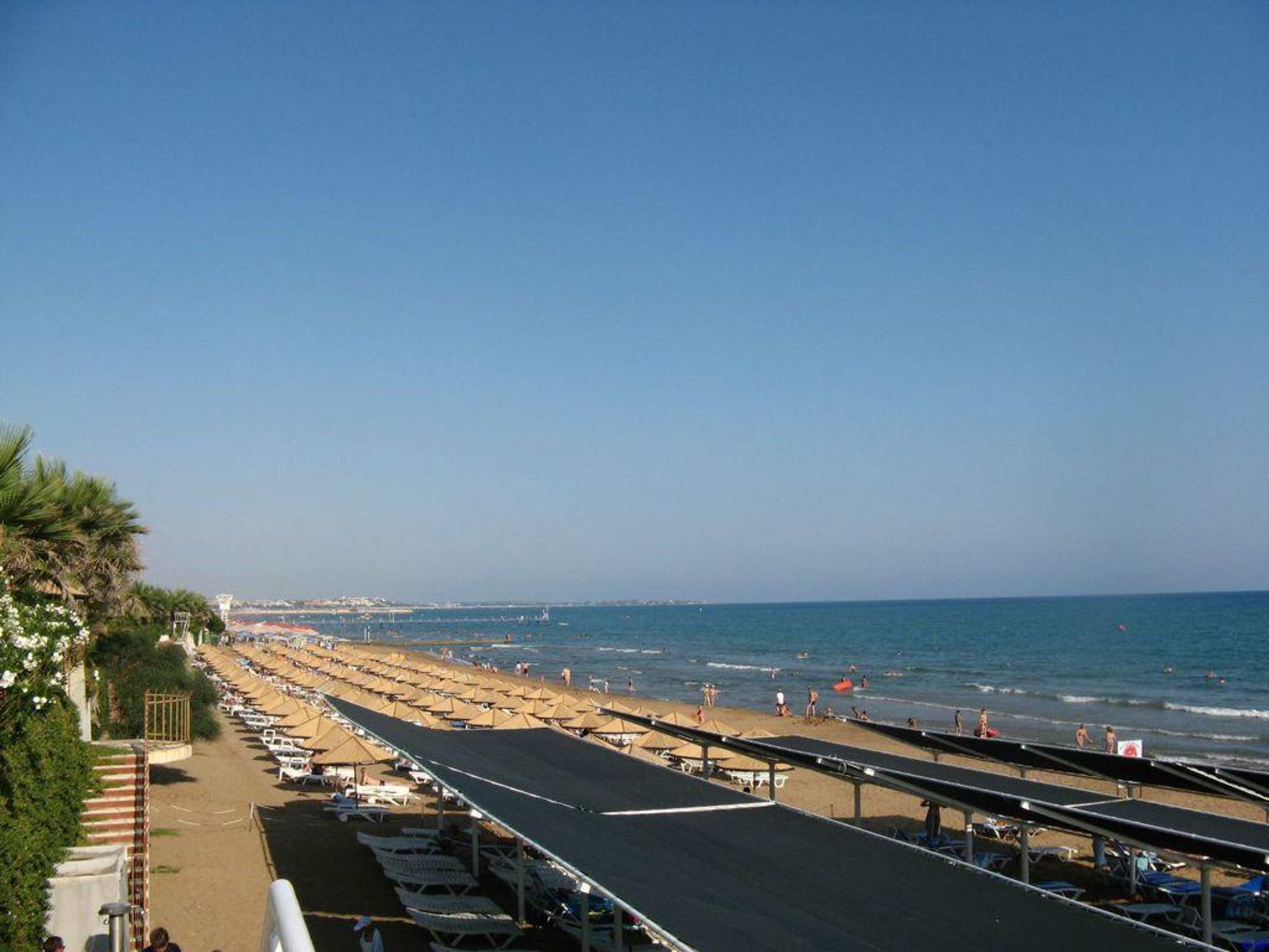 Unter den dunklen Sonnensegeln gibt es genügend Schatten um sich nicht zu verbrennen.
