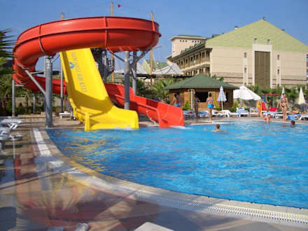 Kinderpool mit zwei Rutschen, im Hintergrund das nachbarhotel.