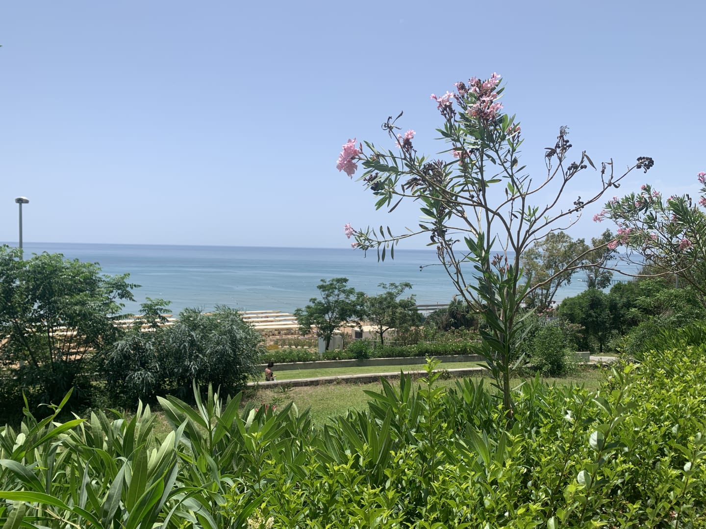 Ausblick von der Strandbar über den Strandabschnitt des Hotels