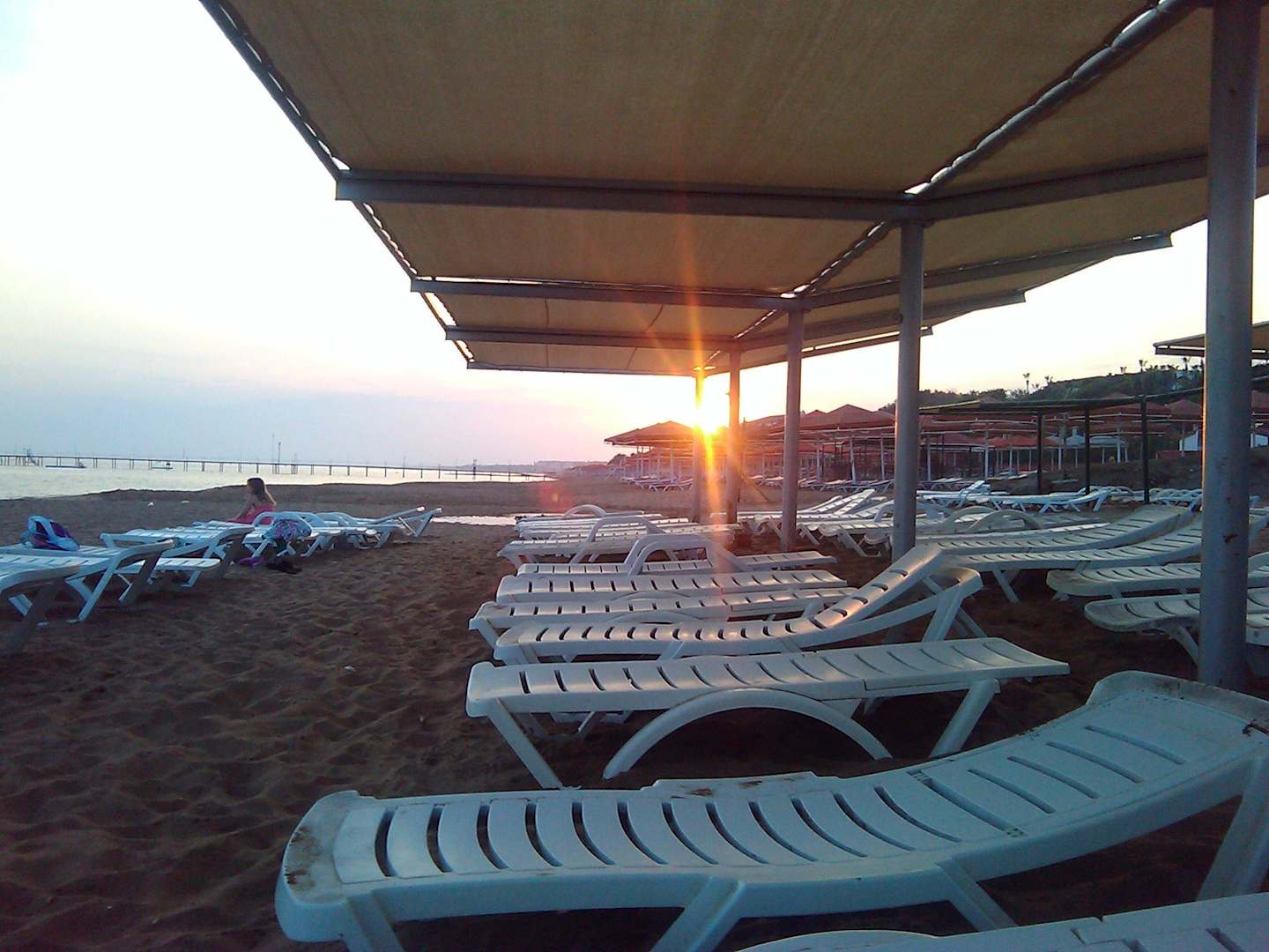 Hotelstrand bei Sonnenuntergang