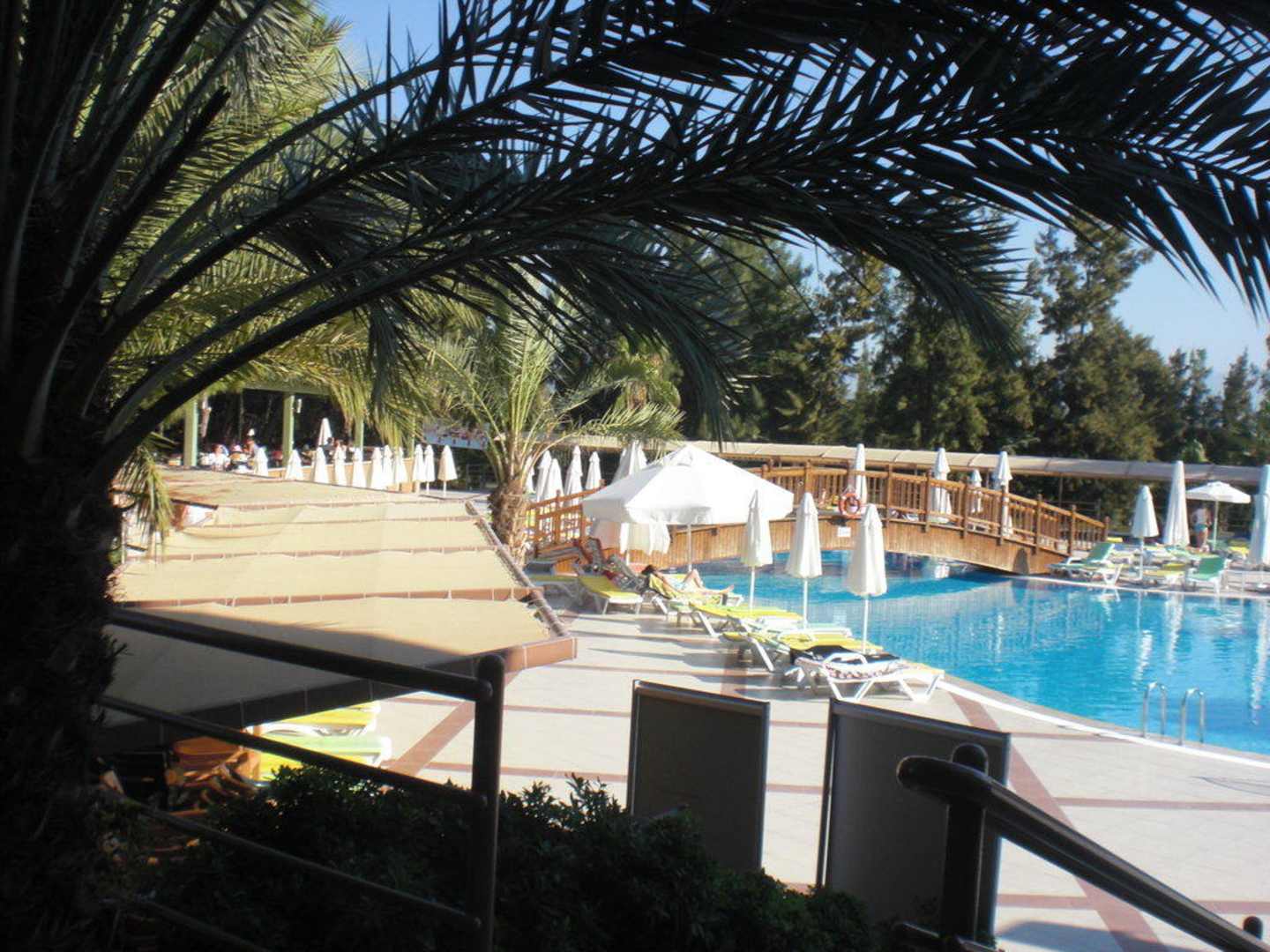 Blick zur Poolanlage mit Snackbar