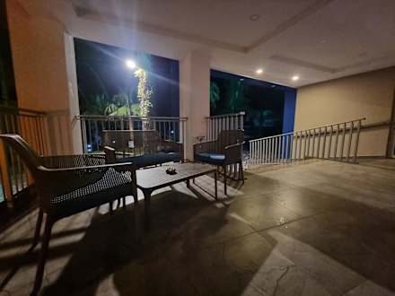 Sitzbereich draußen vor der Lobby