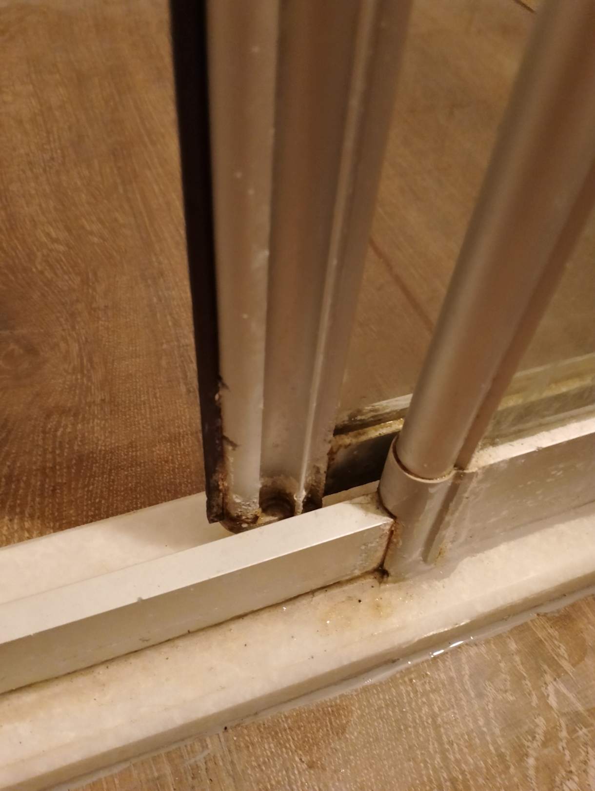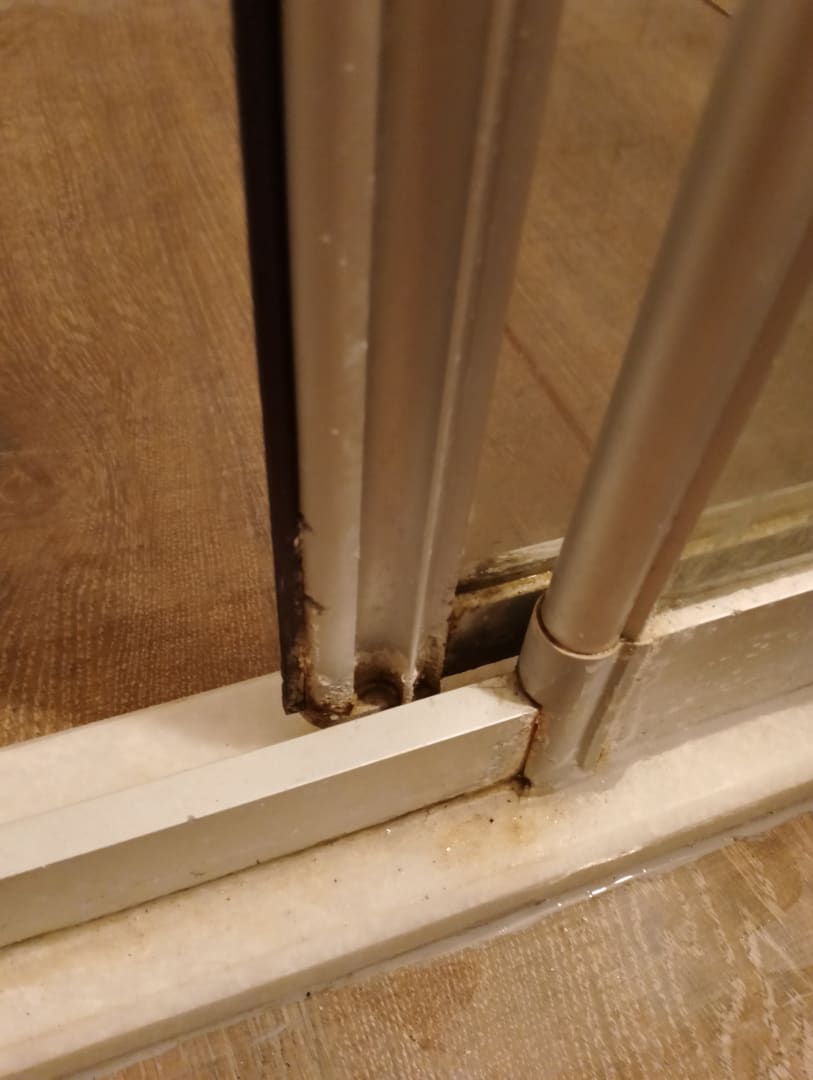 In der Duschkabine außen und innen Schimmel.