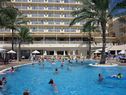Blick vom Pool aufs Hotel