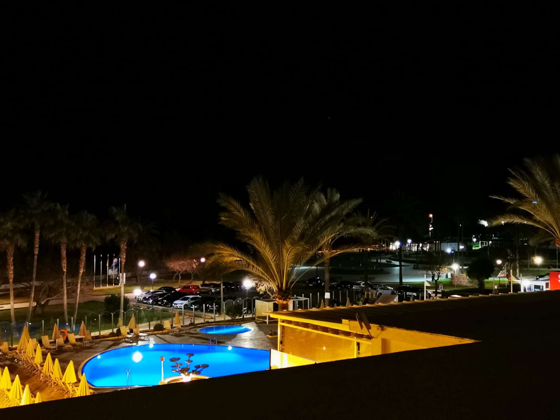 Der Blick vom Zimmer auf den Pool