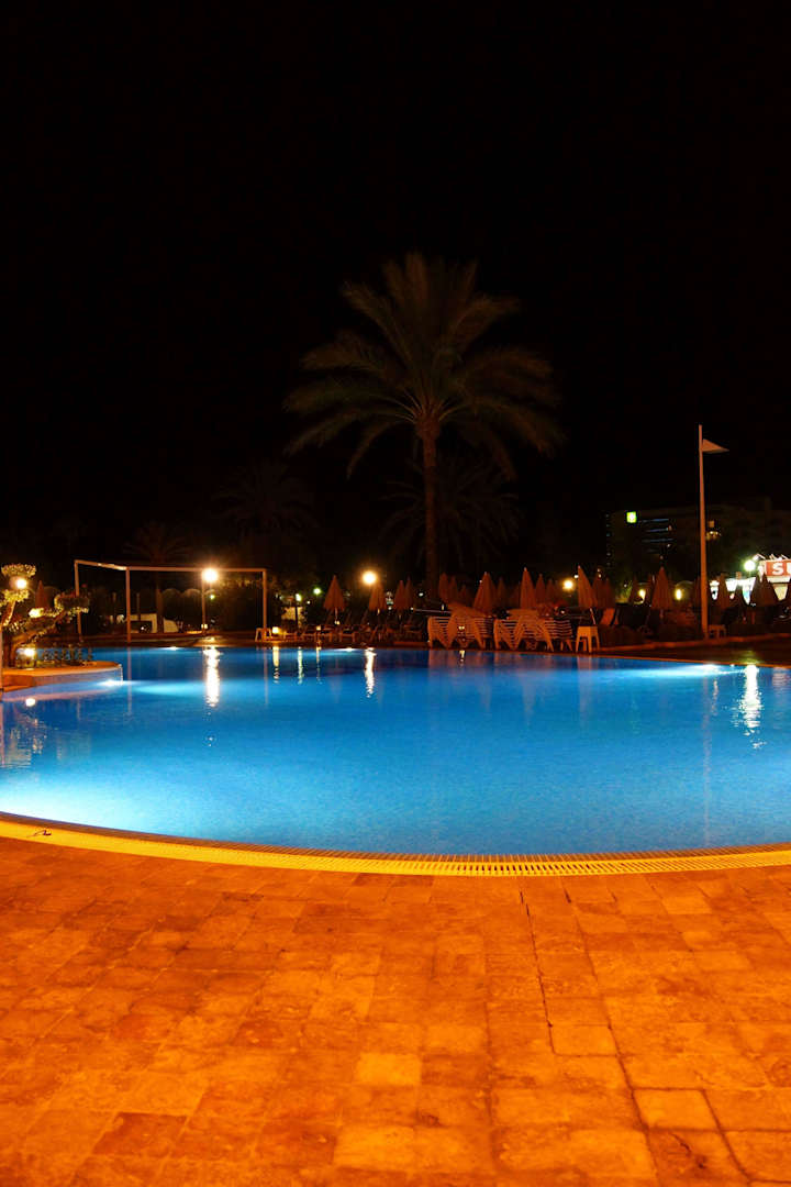 Poolanlage bei Nacht