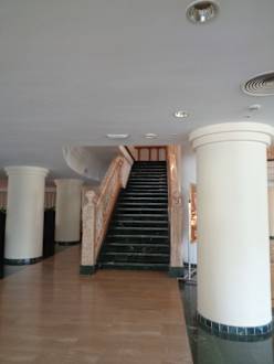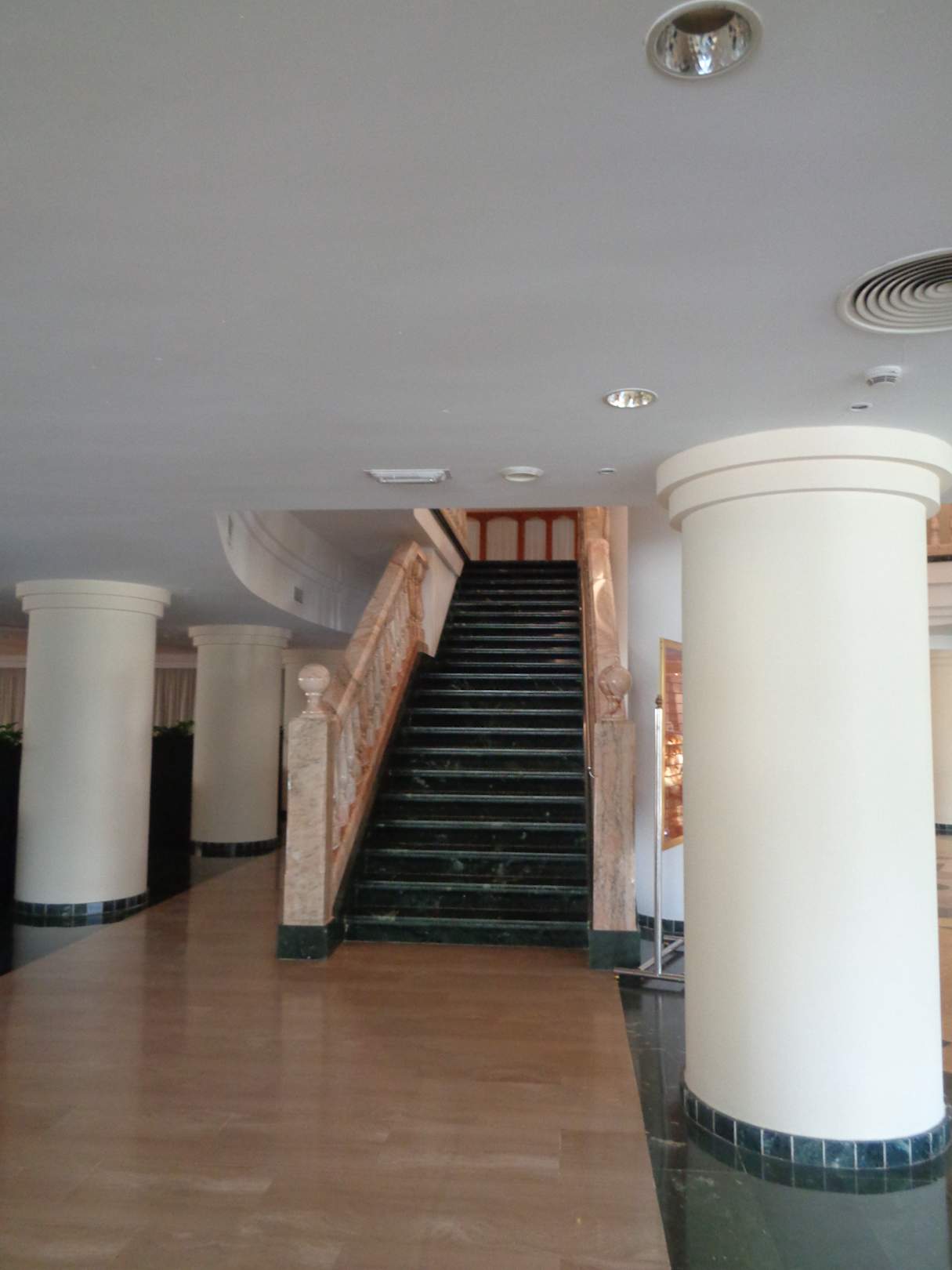Treppe zum Speisesaal von der Lobby aus.