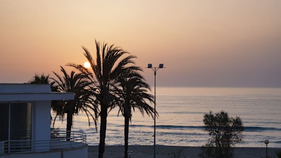 Sonnenaufgang aus einem Zimmer mit seitlichem Meerblick