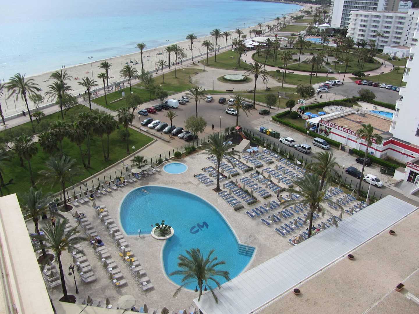 Blick vom Balkon zum Pool