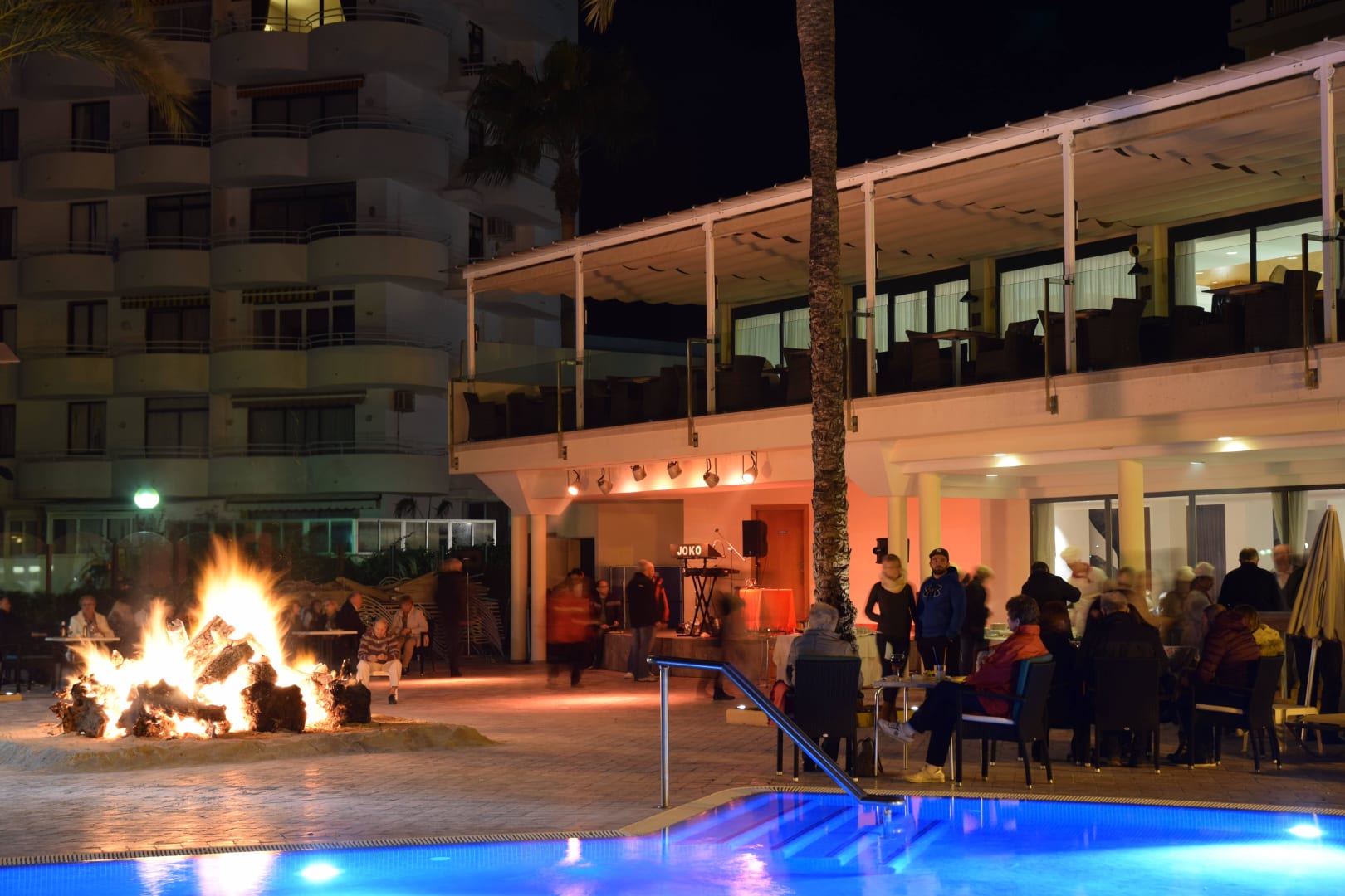 Grillfest mit Lagerfeuer am Pool