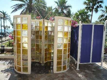 Dusche und Umkleide direkt am Pool