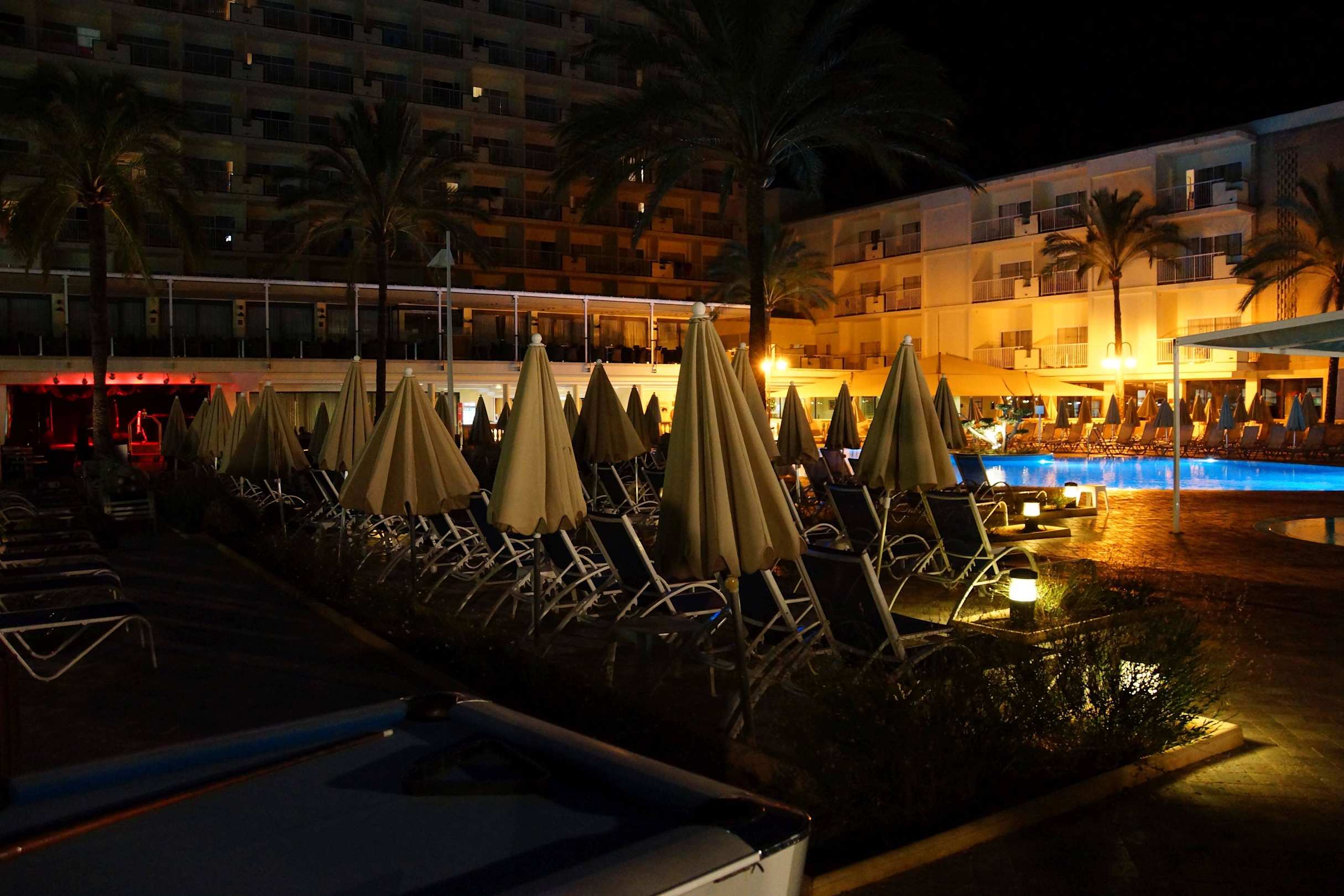 Poolanlage bei Nacht