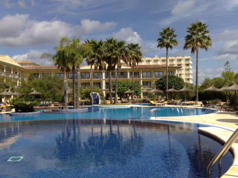 Mallorca Palace am 28.9.2010 um 12 UhrBlick auf Pool und Teil der Hotel-Anlage mit Palmen