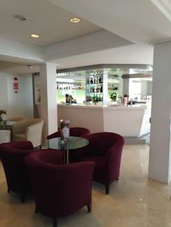 Sitzgelegenheit mit Bar im Hintergrund