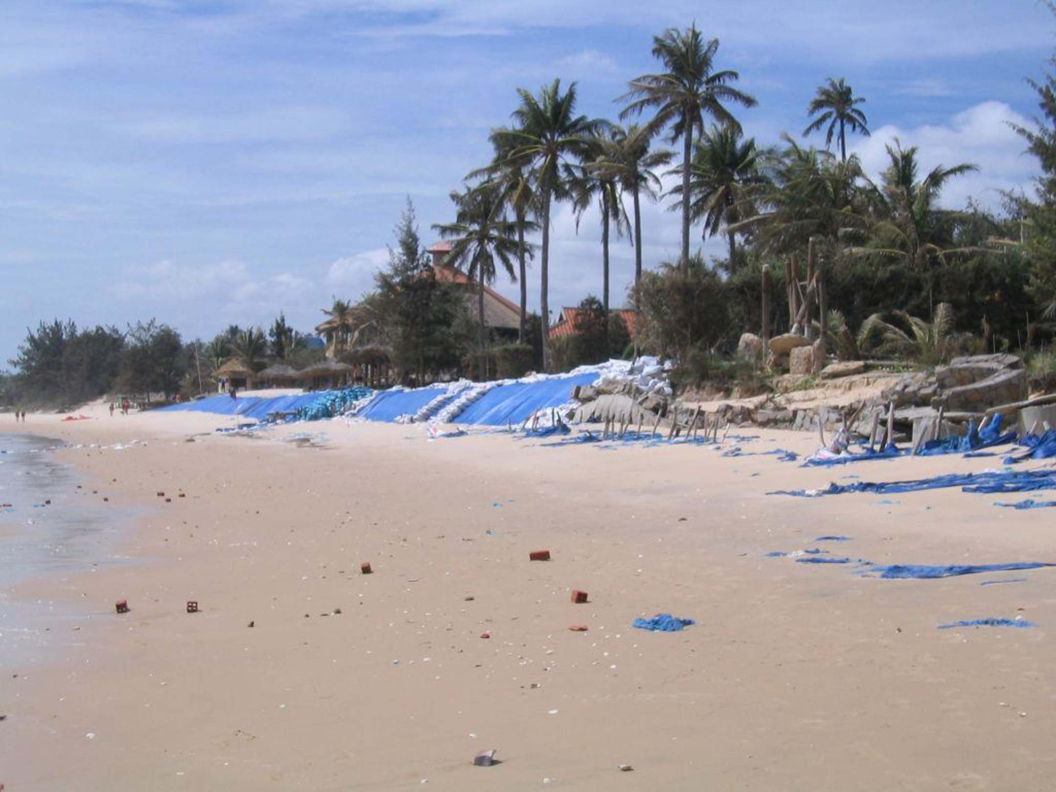 Strand vor dem Seahrose mit Sandsäcken