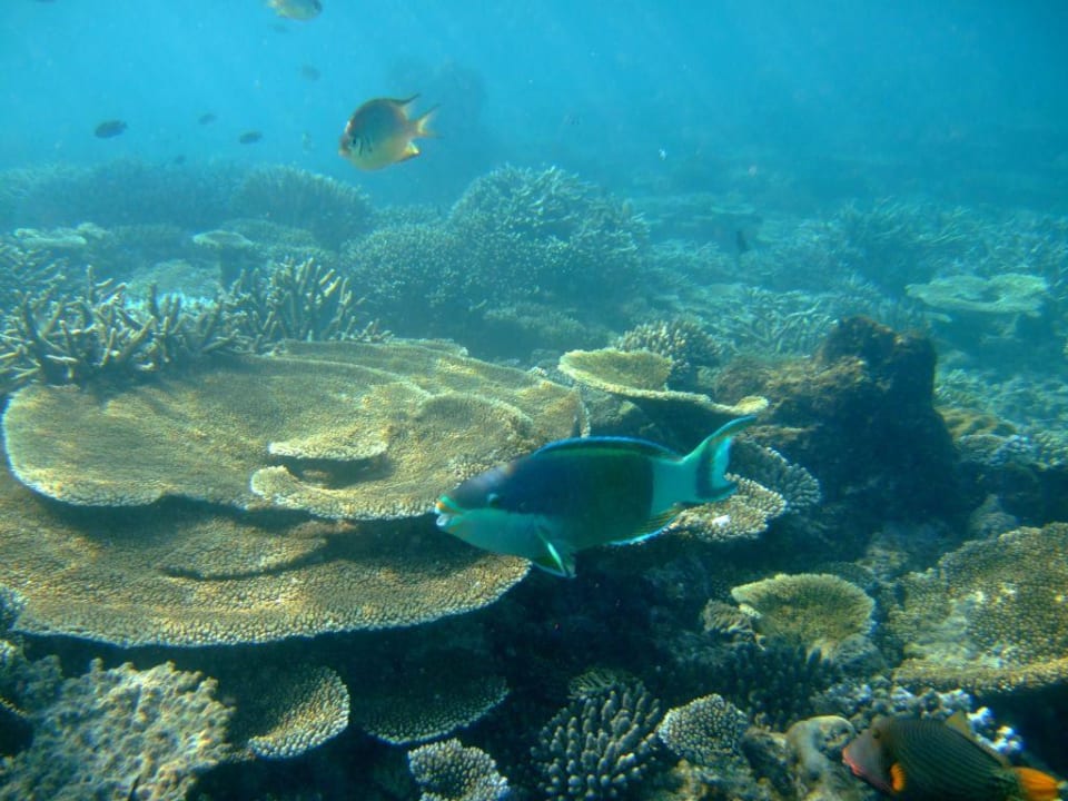 Unterwasserwelt an den Watervillasca. 15 Meter von der Wasservilla entfernt, ist eine sehr schöne und interessante Unterwasserwelt zu beobachten