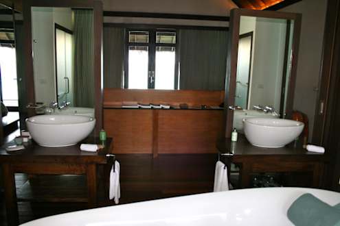 Blick aus dem Badezimmer ins Schlafzimmer