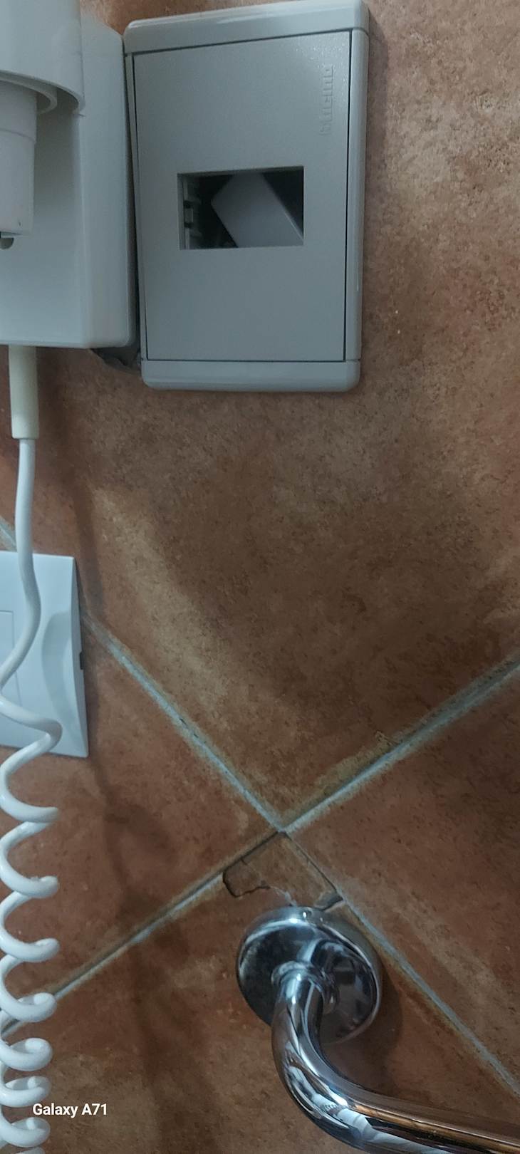Kaputte Steckdose und herabfallende Fliesen im Bad