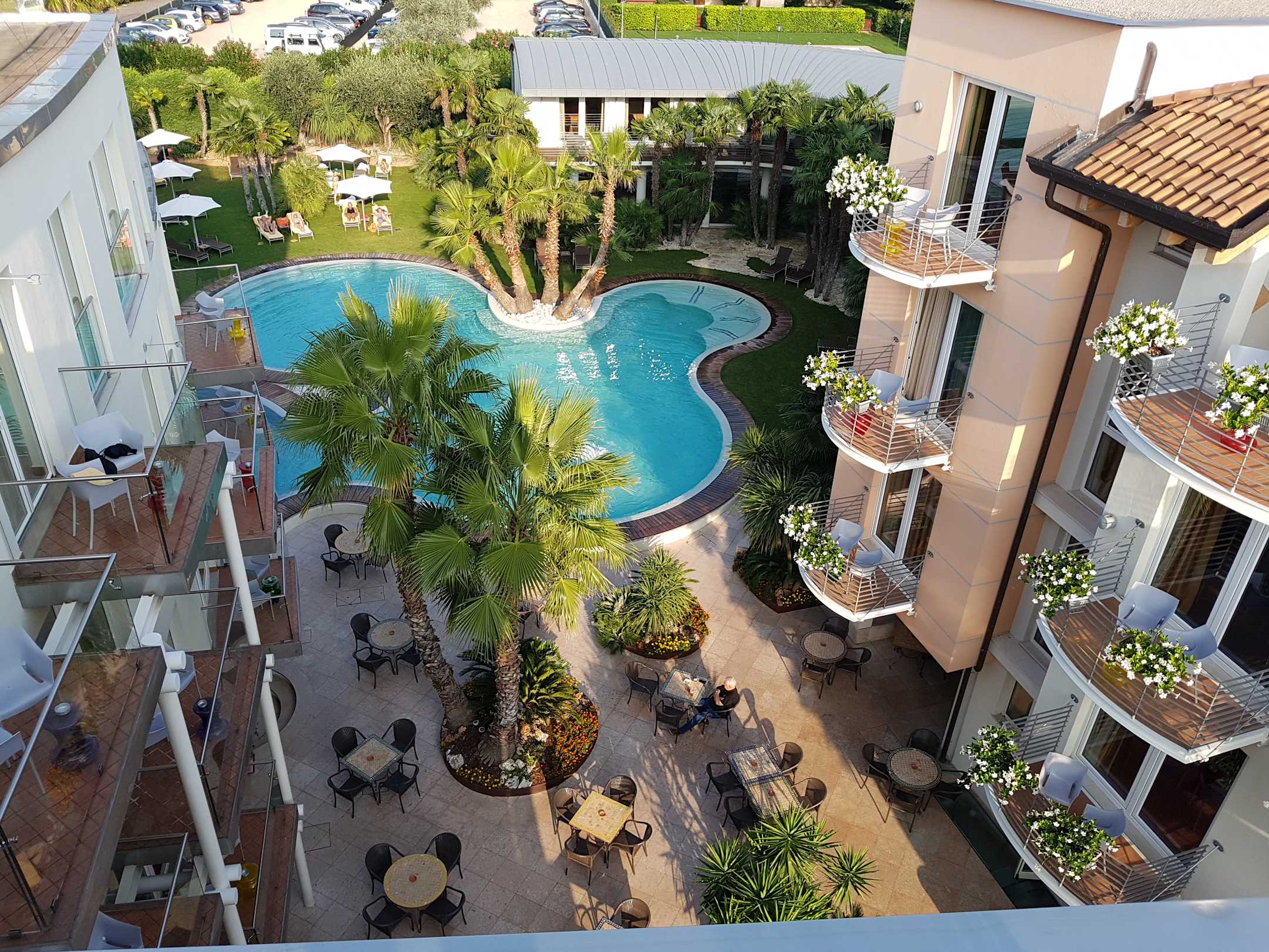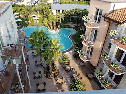 Aussicht vom Zimmer auf den Pool