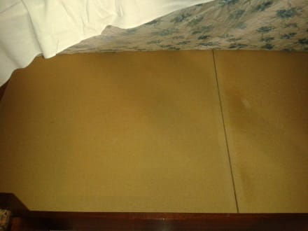 Unter der Matratze waren Spanplatten und die Matratze ohne Schonbezug. Die Bettwäsche schmuddelig