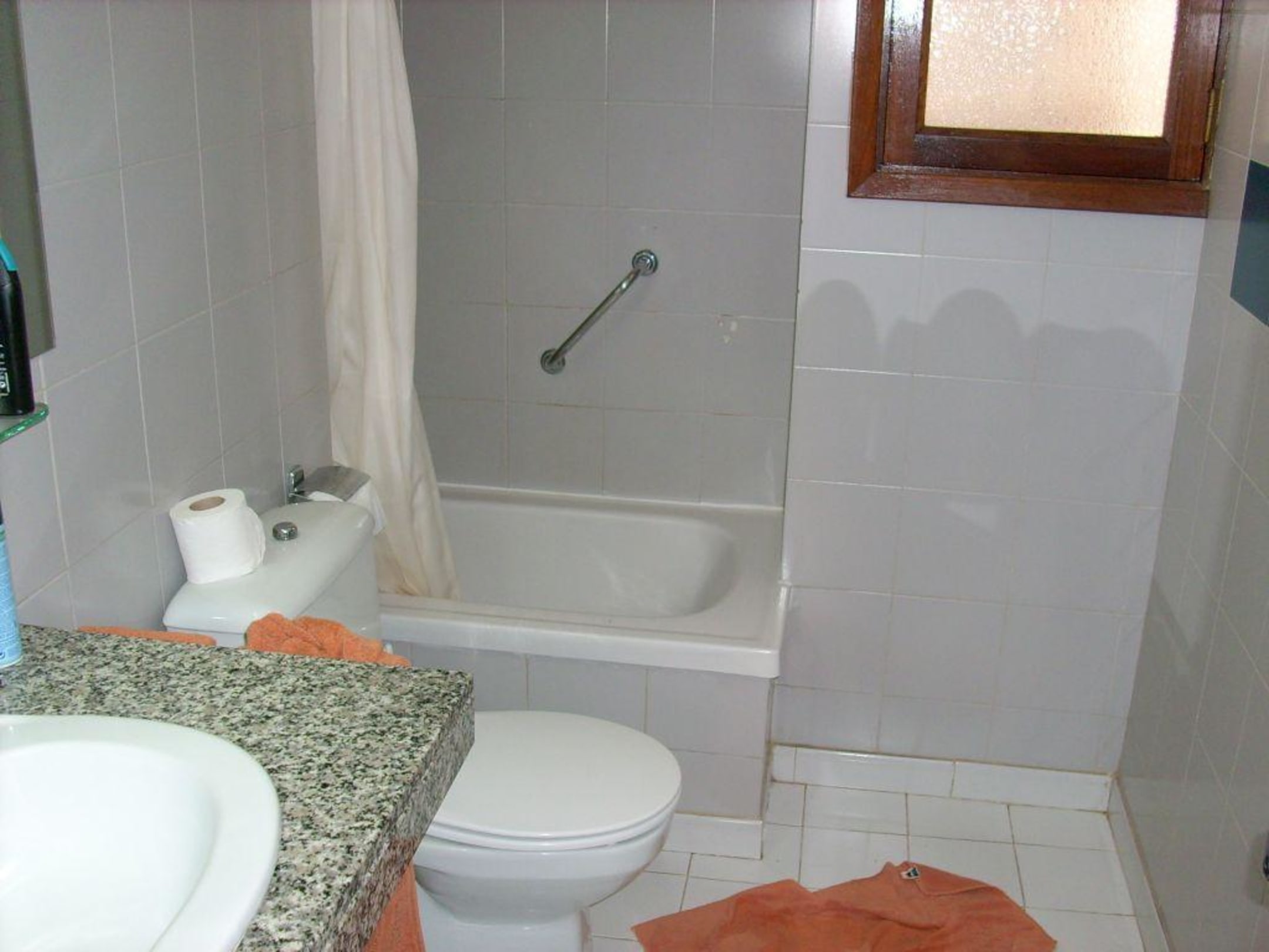 Hier das Bad mit Minibadewanne,zum Duschen gehts aber.Wurde 3 mal die Woche gereiniht,sehr sauber.