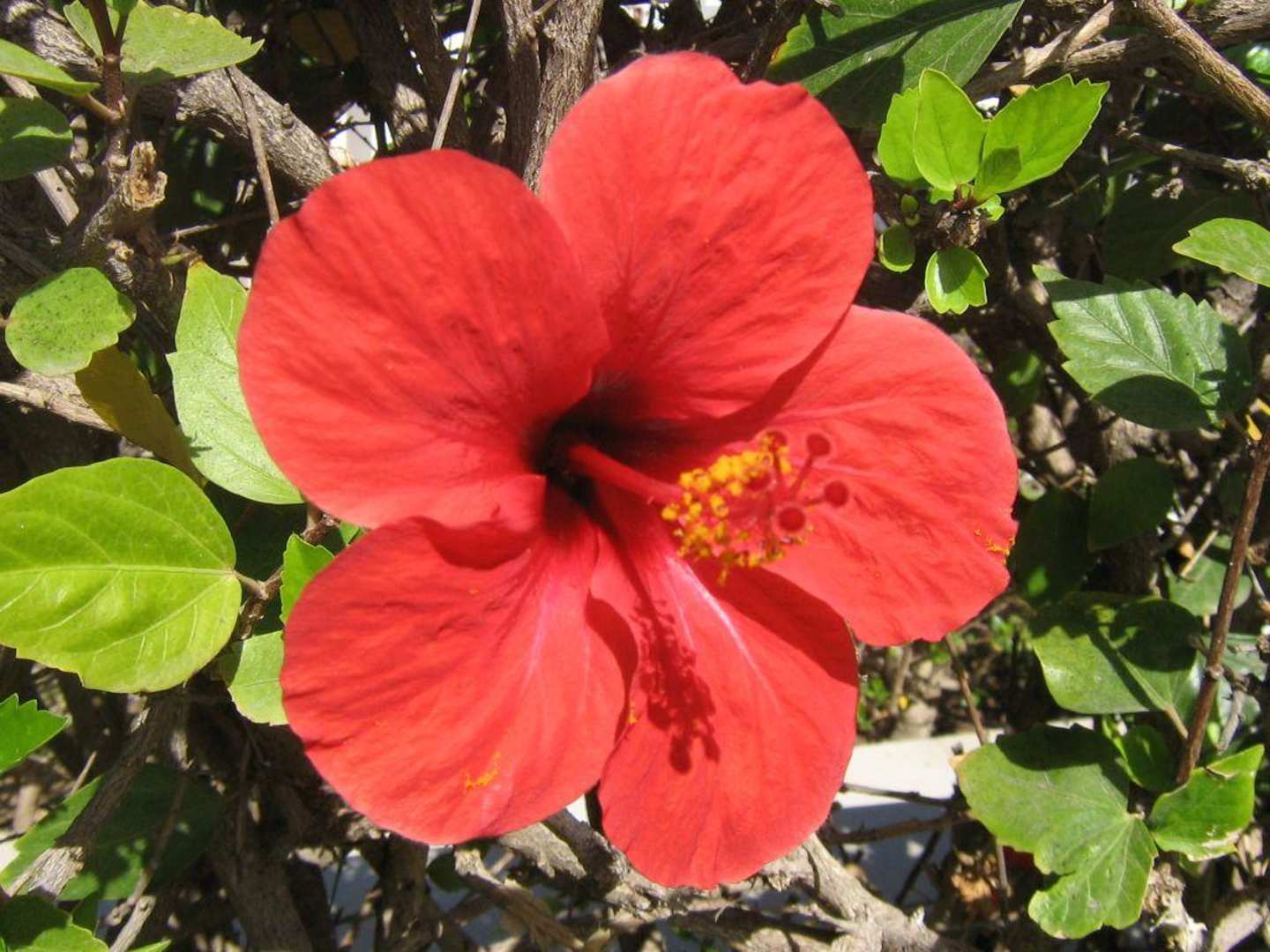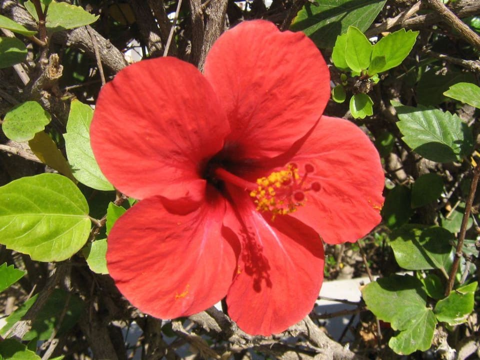 Hibiskus Blüte an der Hecke zwischen den Bungalows