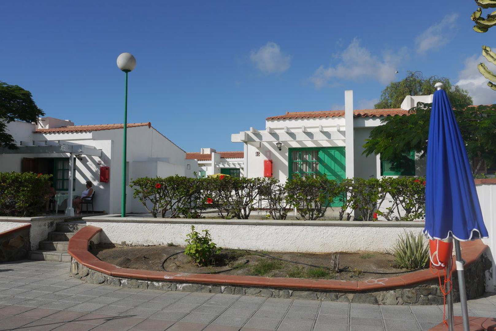 Sicht vom Pool auf Bungalows.