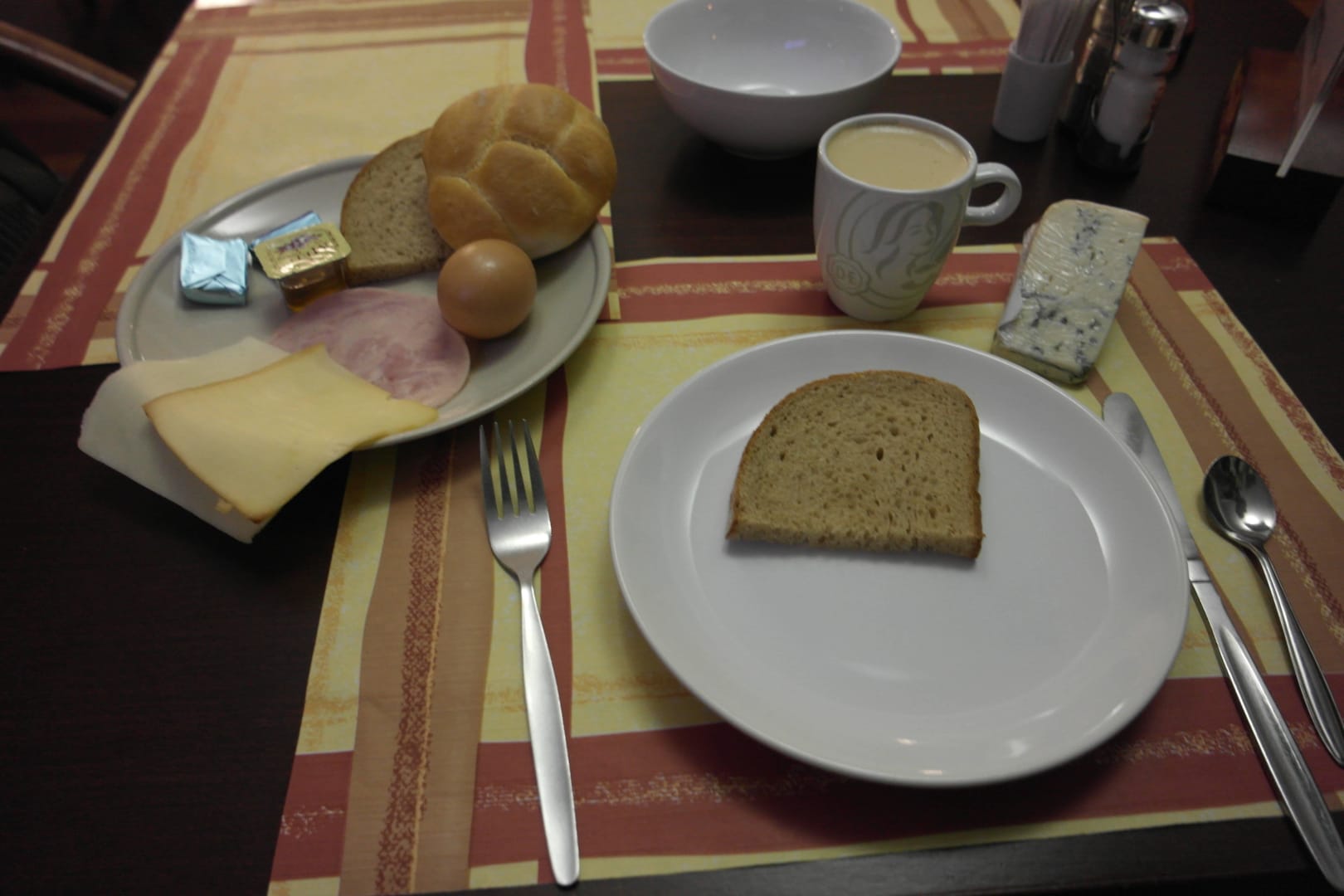 Frühstückstellerso weit akzeptabel - Butter steinhart weil zu kalt. Mit Brötchen kann man Scheiben einwerfen... - aber Brot sehr lecker