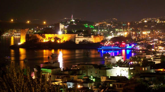 Castle & catamaran disco by night