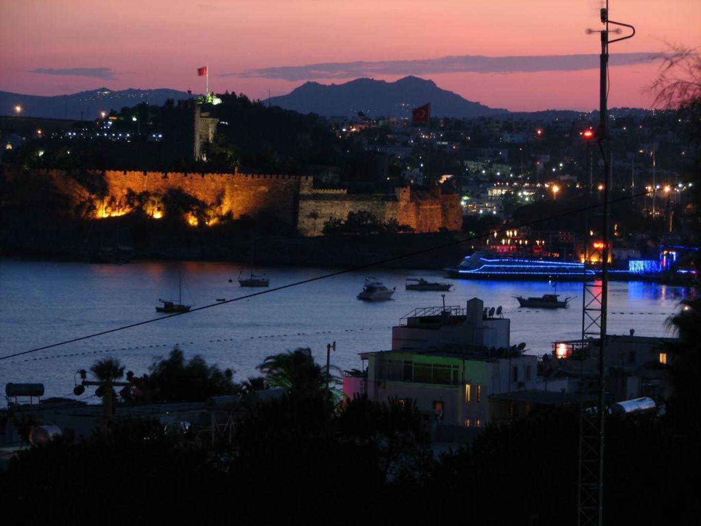 Zachód słońca widziany z comca manzaraZachód słońca widziany z Comca Manzara, widok na zamek w Bodrum