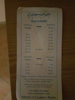 Abfahrtszeiten vom Boat Shuttle nach Gozo und Malta und zurück.