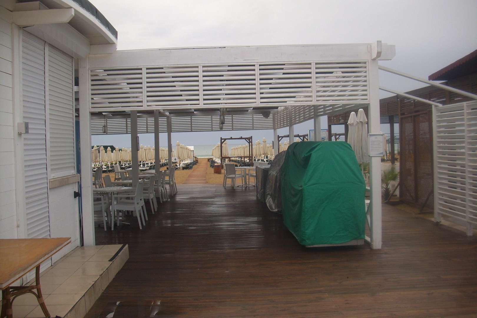 Blick vom Strandrestaurant zum Strand