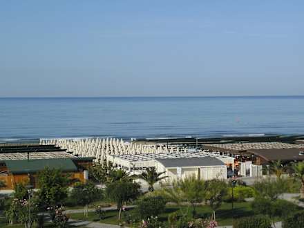 Ausblick vom Zimmer auf Strand und Meer