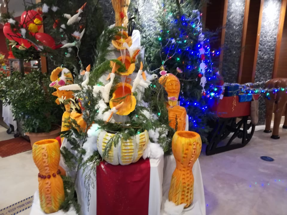 Gemüseschmuck im Restaurant zu Weihnachten.