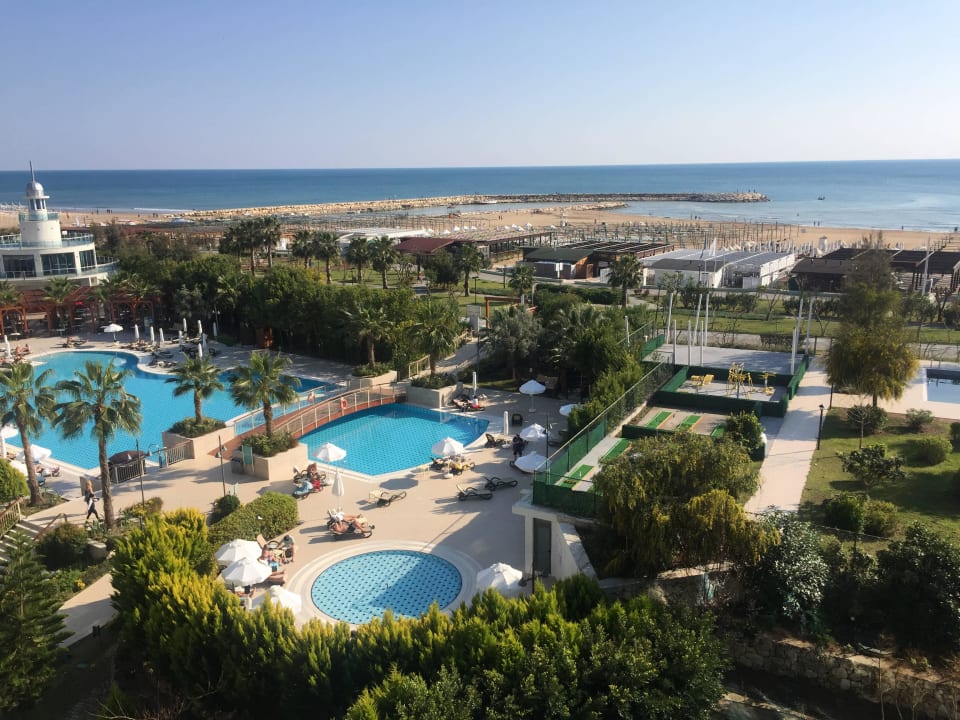 Zimmer-Ausblick bis zum Hotel eigenen Strand.