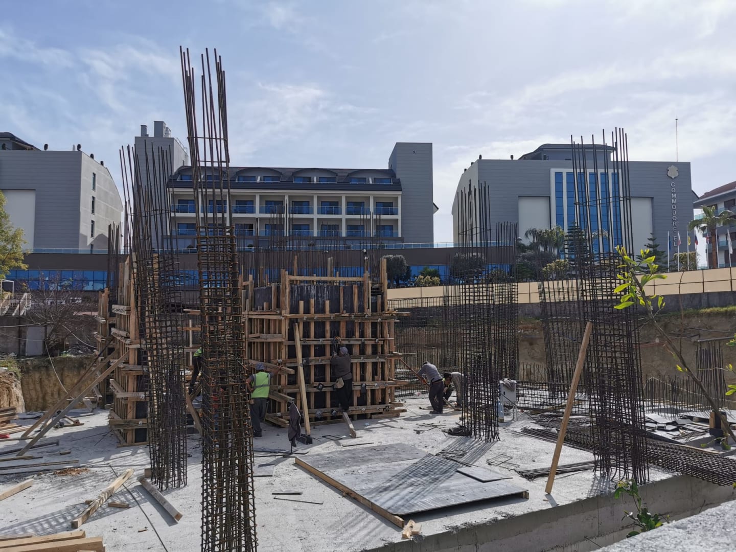 Außenansicht mit Baustelle für neues SEHER Hotel