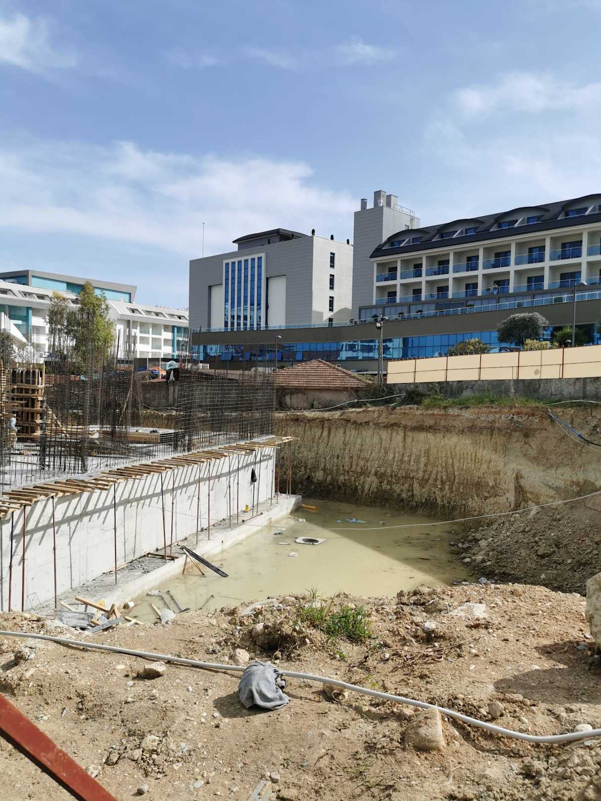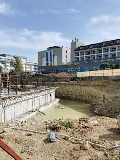 Außenansicht mit Baustelle für neues SEHER Hotel