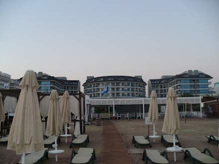 Aussicht vom Strand auf das Hotel