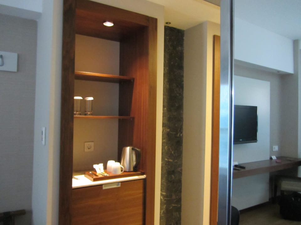 Kaffee, Tee, darunter Kühlschrank