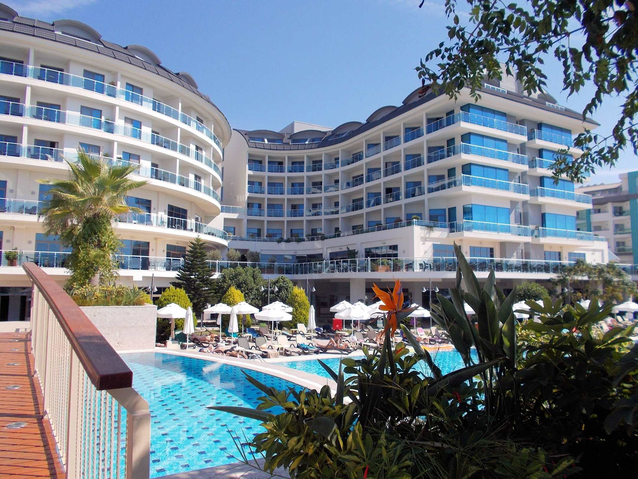 Blick auf Pool und Hotel