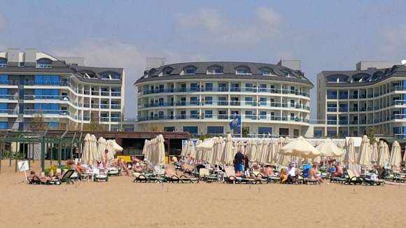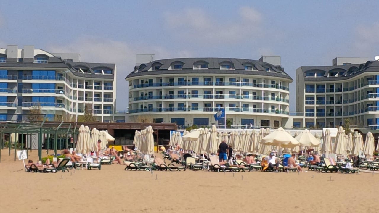 Blick vom Meer zum Hotel