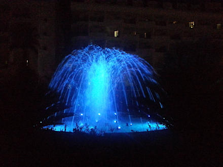 LED-Springbrunnen vor dem Hotel