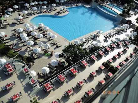Blick vom Balkon auf den Pool