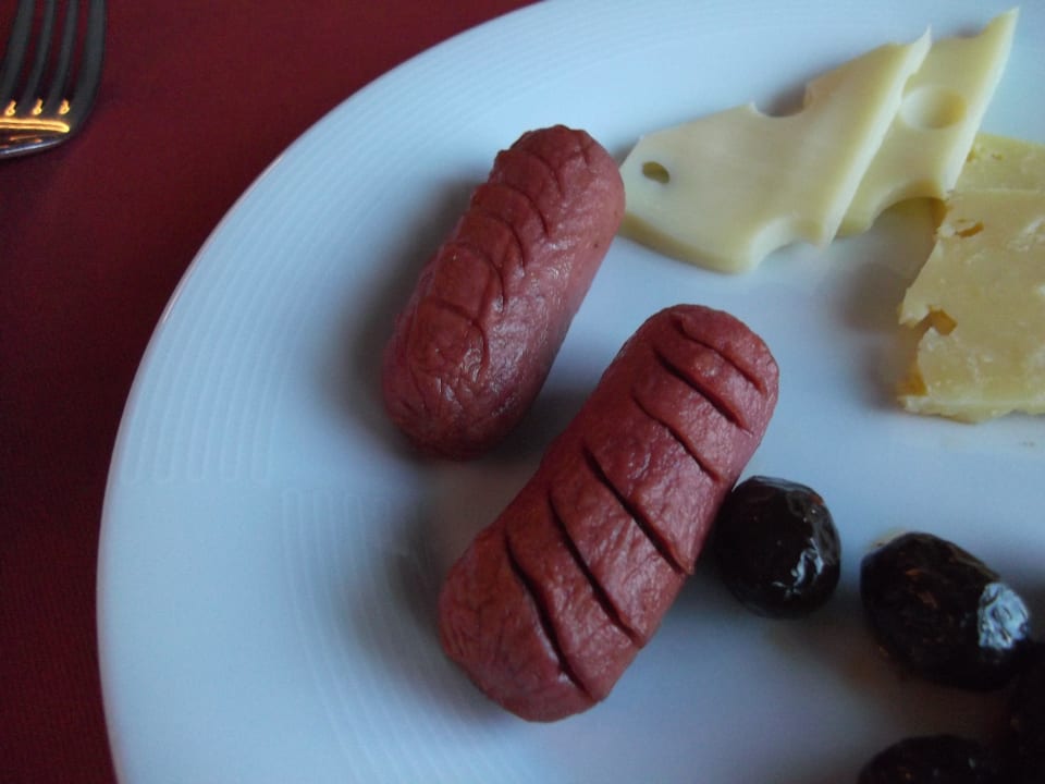 Würstchen, Edamer, Parmesan und Oliven auf meinen