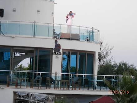 Geigenspielerin beim Abendessen