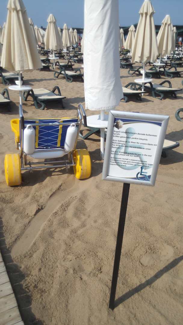 Sessellift für Rollstuhlfahrer am Strand