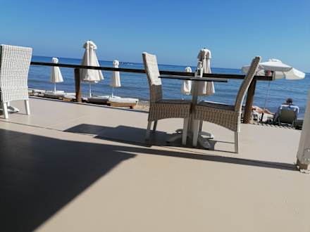 Die Terrasse direkt am Meer